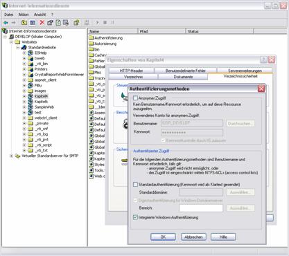 Authentifizierungsmethode des Internet Information Server (IIS) und damit auch auf die Windows-Sicherheit zurück. Im IIS besteht die