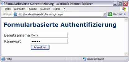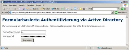 ein bestimmtes Webform zur Authentifizierung verwendet.