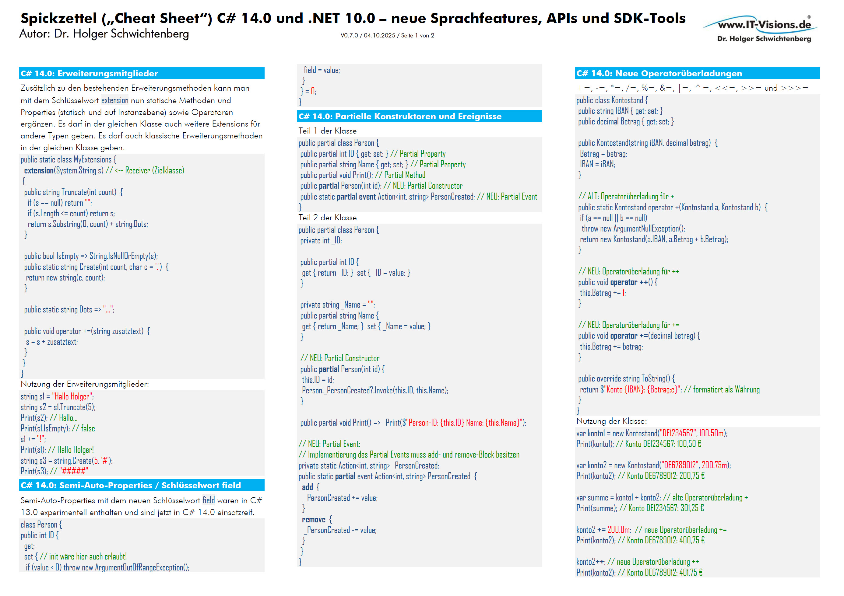C# 14.0 - Neuerungen gegenüber C# 13.0